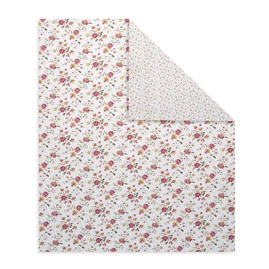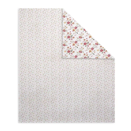 - Reversible with a medium scale botanical design on the front side and a smaller scale design of floral sprigs on the reverse.